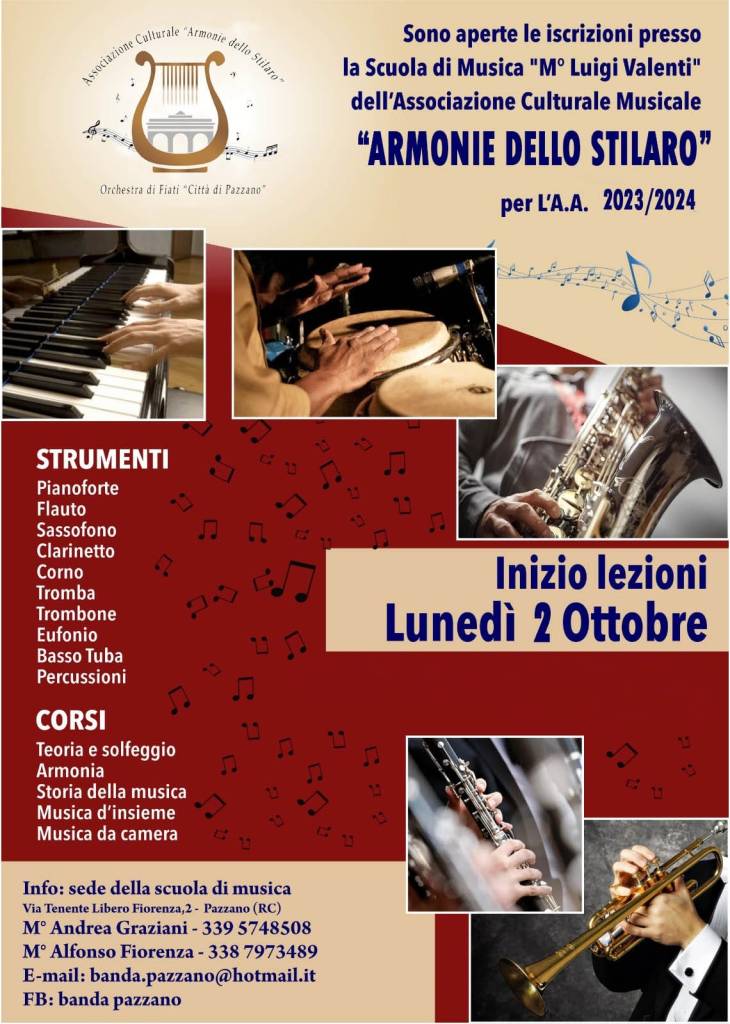 L’Associazione Armonie dello Stilaro APS rende noto che i brani finalisti del nostro recente concorso di composizione sono ora custoditi nel nostro archivio. Questi brani rappresentano l’eccellenza e la creatività dei partecipanti e siamo orgogliosi di preservarli come parte del nostro patrimonio musicale.