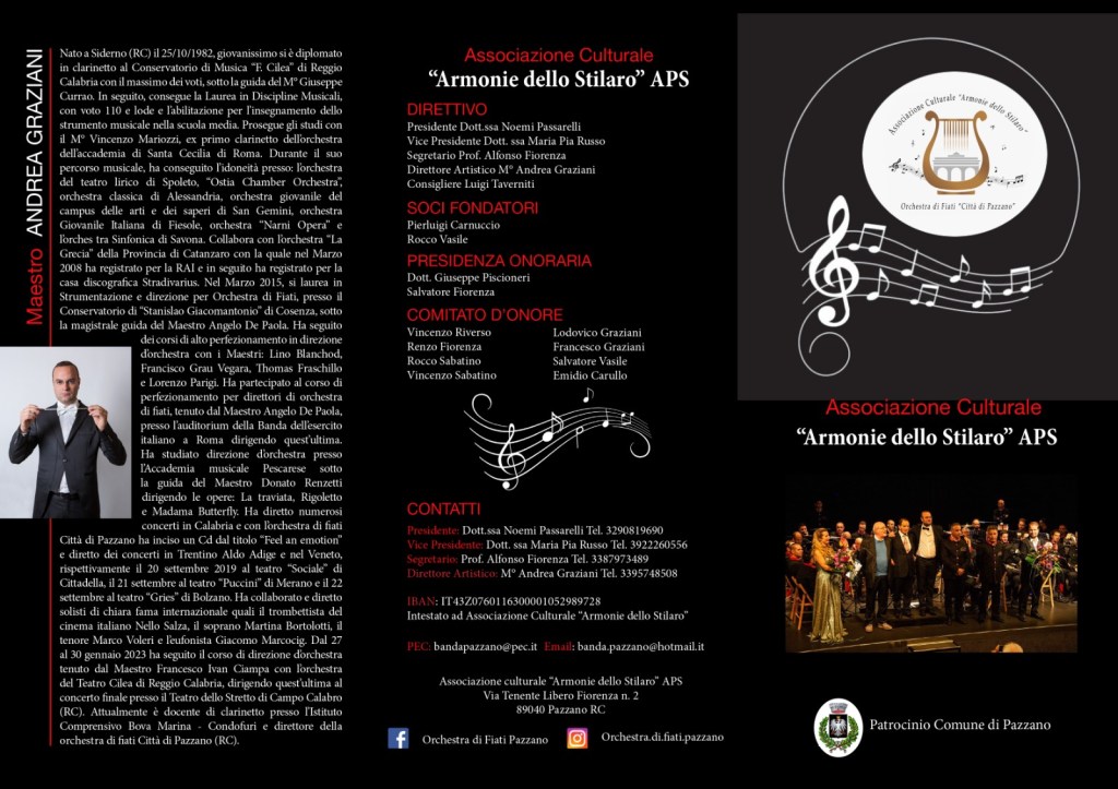 Esplora il nostro sito per scoprire di più su chi siamo, le nostre prossime esibizioni e come puoi unirti a noi per condividere la gioia della musica e dell’arte degli strumenti a fiato. Ti ringraziamo per aver visitato il nostro sito e per il tuo interesse nell’Associazione Culturale “Armonie dello Stilaro” APS